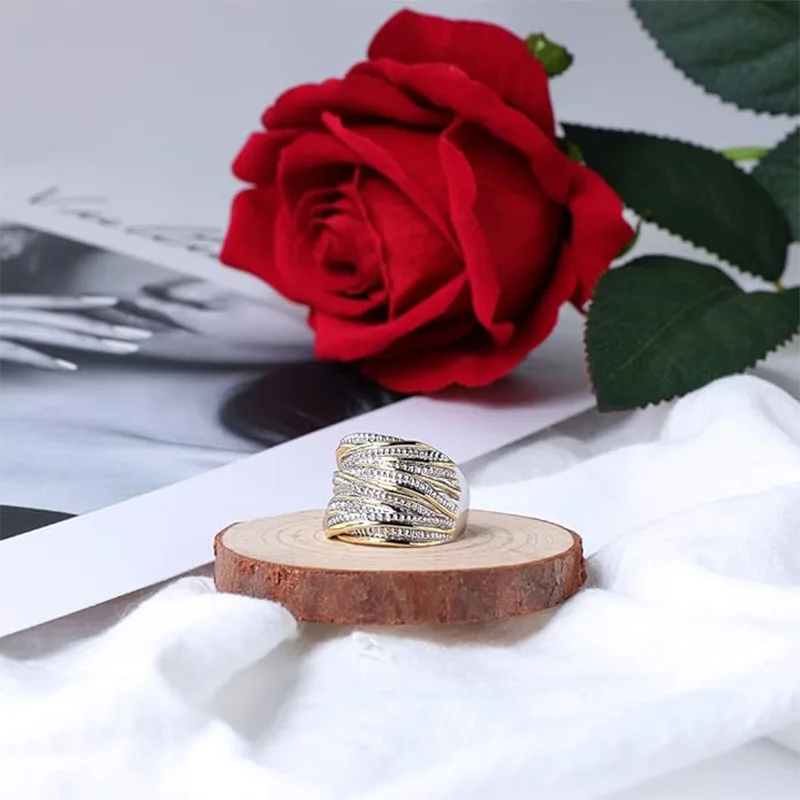 Привлекательный двойной цвет золота и серебра. Материал этого модного кольца — медь, а двухцветное покрытие из золота и серебра повышает визуальную привлекательность. Этот контраст добавляет ощущение роскоши и выглядит как кольцо из 14-каратного золота, не выцветая.