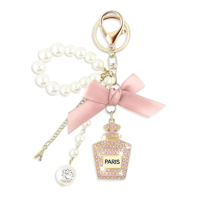 Симпатичный роскошный брелок для ключей имеет искусно вырезанную форму флакона для духов, инкрустированную блестящими жемчужинами и кристаллами, излучающими ощущение роскоши и женственного очарования. Еще одна сочетает в себе классический дизайн букв с небольшим кулоном в форме сердца, украшенным жемчужными и золотыми деталями. Это и модно, и элегантно. Оба имеют высокий уровень внешнего вида и в полной мере демонстрируют неповторимый вкус. Общий дизайн изысканный и компактный, без какой-либо вычурности. Его можно повесить на сумку или ключ, он в сдержанной манере излучает ощущение роскоши, легко привлекает внимание и подчеркивает чувство моды владельца. Будь то полировка флакона духов или сборка брелка с буквой в форме сердца, все они выполнены изысканно, без каких-либо шероховатостей или заусенцев. Инкрустация жемчугом и кристаллами прочная и не отвалится. Каждая деталь излучает высококачественную текстуру.