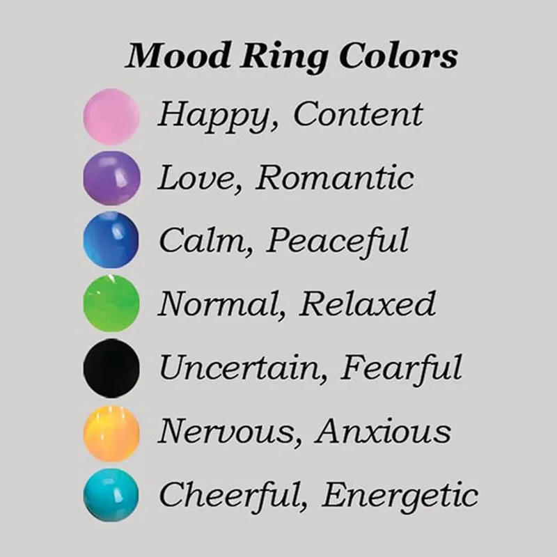 Размер можно отрегулировать, чтобы он подходил каждому. Больше нет беспокойства по поводу размера. Удобное детское кольцо с защитой окружающей среды чувствительно к температуре, поэтому, когда ваши эмоции меняются, температура вашего тела также может меняться вместе с эмоциональными изменениями. Разные цвета представляют разные эмоции.