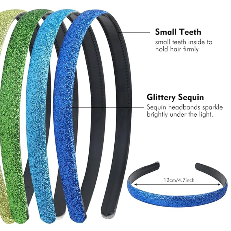 Несколько сценариев применения: пластиковые повязки на голову с блестками для праздников подходят для различных случаев: от повседневной одежды до свадеб, выпускных вечеров, вечеринок и т. д. Это декоративные ленты для волос, которые могут добавить яркости любому стилю и подходят для женщин, девочек, подростков и детей.